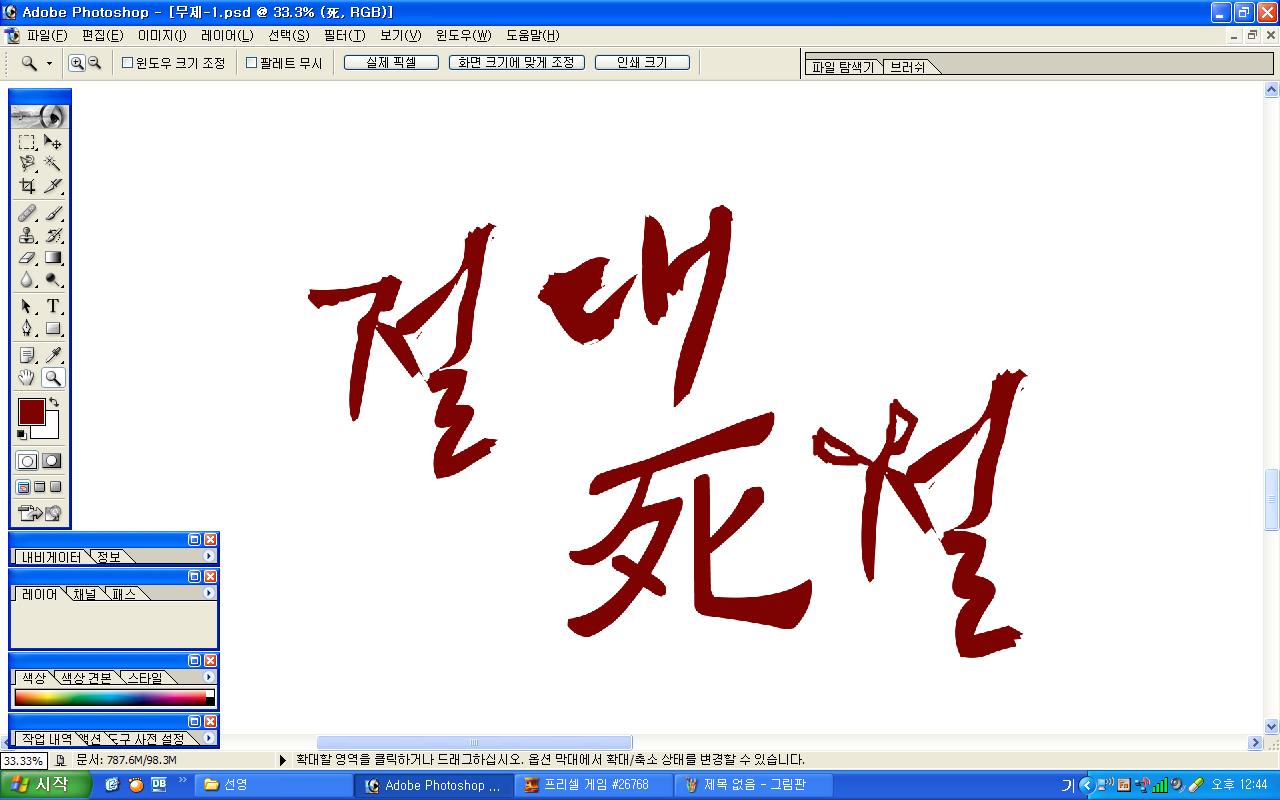 정중히 캘리 부탁드립니다. -_- 류재철 일반 0 5756 2009.11.16 11:18 실력자 분들이 많이 계셔서 이렇게 염치없게 부탁드립니다. - 절대死절 : 첨부한 파일 참고해주시면 감사하겠습니다.(약간 거친느낌? ^^;;) : '절'자의 ㅈ은 가위로...^^;; : 포스터 제작용이라 ai 파일이 필요합니다. 대학동아리 연극공연 포스터로 쓸 예정입니다. 비상업적인 공연이라 이렇게 부탁드립니다.